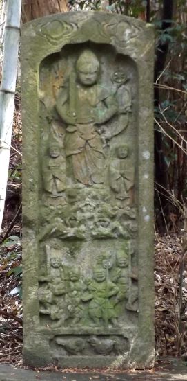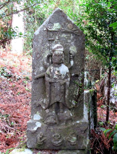 宇目地区で青面金剛像塔を探している時に、頭部や顔面が失われた像塔を見かけた。明治初期の神仏分離と廃仏毀釈、修験道廃止などの一連の布告により、街道沿いの石祠などが一斉に取り除かれたという。神道を国教化し、天皇を中心とした国家に改変するために、路傍の石仏や民間信仰による石祠などは取り壊され、あるいは山中に遺棄されたといわれる(のちに、神道国教化は挫折した)。 |