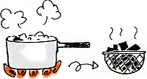 1.備長炭を流水の中でタワシで洗います。(洗剤は絶対に使わないで下さい) | 2.10〜15分ほど煮沸消毒したあと、ザルにあげて冷まします。 | 3.風通しの良いところで約一日干します(陰でなくても大丈夫!) | ||||