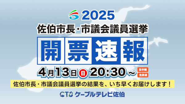 CTSケーブルテレビ佐伯では、4月13日 に行われる佐伯市長・市議会議員選挙の開票速報を、特別番組で放送します。番匠体育館より開票状況などを生中継でお届けします。